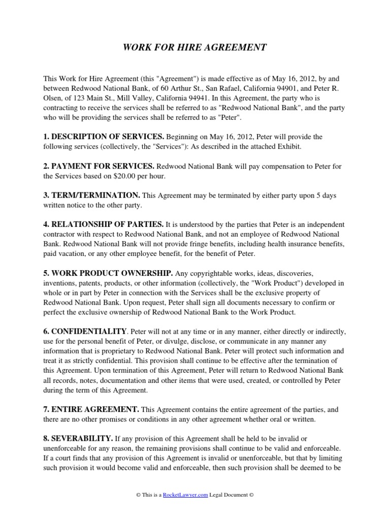 Get A Work for Hire Agreement Using Our Simple Step-By-Step Process. Create a service agreement to protect your rights and ensure your compensation. Ad Easily Hire Manage Pay Contractors With Our End-to-End Global Employment Platform.
